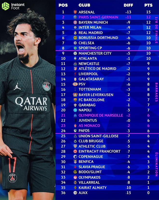 对于西甲球队而言,皇马凭借胜利稳居前八,仍有望冲击前两名以获得淘汰赛阶段全程主场优势;巴萨与马竞取胜后仍保留前八希望;毕尔巴鄂与比利亚雷亚尔虽处境艰难,但尚未完全失去晋级可能。